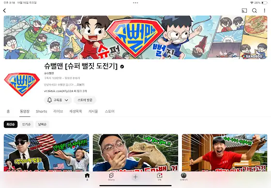 슈뻘맨형들 구독자 100만!!!!!!!!!!
