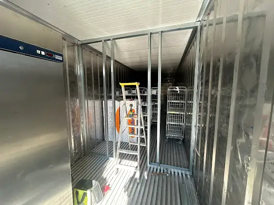 Working on the container today, video coming soon with the partition wall, power and hopefully water!