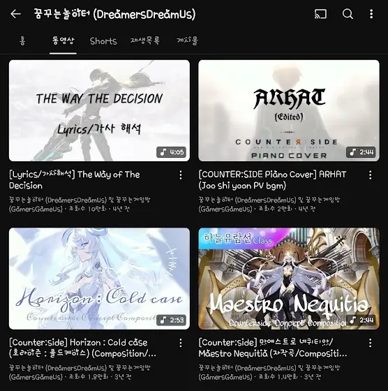 소소한 공지1. 이 채널을 만들기 전 예술계정(@DreamersDreamUs )에 올라갔었던 게임영상들에 공동작업자로 게임계정도 엮을 예정입니다. 또한 이 계정에 올라간/올라갈 게임+예술 작품들은 예술계정과 공동작업자로 엮일 예정입니다.2. 최근 오버워치에 빠졌습니다. 오버워치 캐릭터 자작곡(주노?)이나 오버워치 피아노 커버가 하나 나올 예정입니다. 참고로 올드오션은 작년부터 쭉 봐왔는데 그냥 올드오션은 신입니다 그 팀만큼 재밌는 팀이 없습니다 저한테는(사심가득)3. 예전보다 빈도는 줄었지만 게임영상도 종종 올리려고 합니다. 요즘 폼이 안살아서 예전처럼 쇼츠로 찍어낼만큼 매드무비가 나오진 않네요게임 관련 피드백/문의는 언제든 환영입니다감사함다!251011 작성