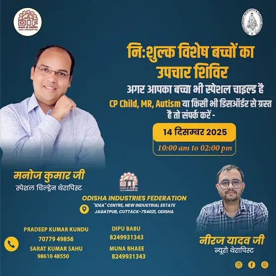 निशुल्क एक दिवसीय उपचार कार्यशाला विशेष बच्चों के लिए कटक उड़ीसा में 14 दिसंबर 2025 ||
