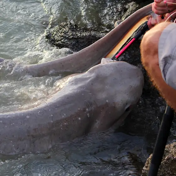 We caught massive Seven Gill Shark in the Oamaru Harbour and everyone got excited about it.