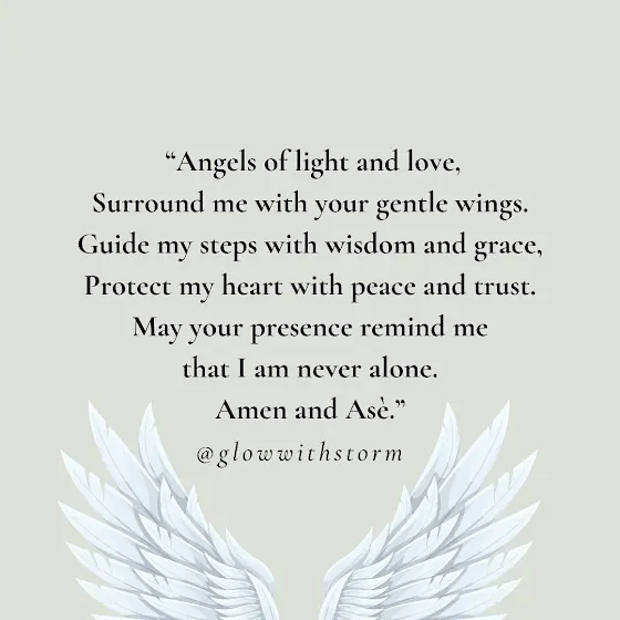 Thank you Angels 🤗🪽✨🙏🏽“Angels of light and love,Surround me with your gentle wings.Guide my steps with wisdom and grace,Protect my heart with peace and trust.May your presence remind methat I am never alone.Amen and Asè.”