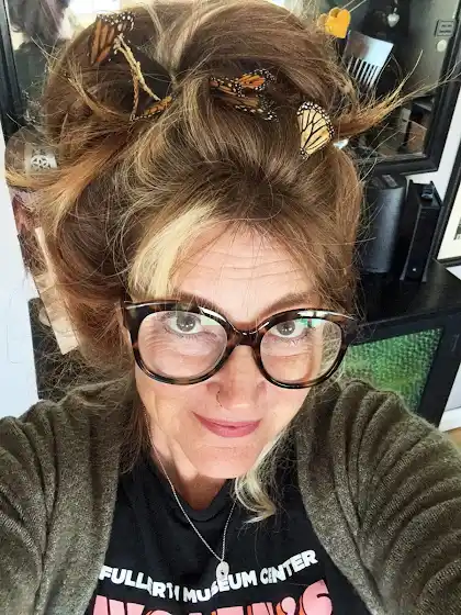 I’m waiting for my moth to dry. I walked over to my dining room where I see the heart full of butterfly wings. Why not put them in my hair!