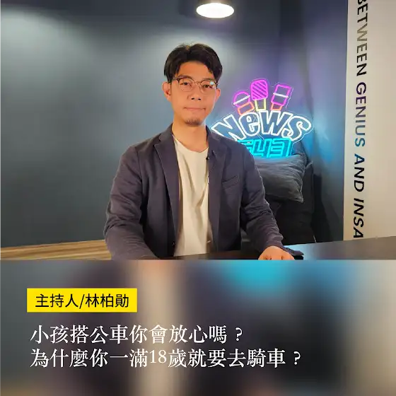 「小孩搭公車你會放心嗎?為什麼你一滿18歲就要去騎車?」這集時代力量黨部、文史交通專欄作家 林柏勛要和大家討論市區公車的相關議題.不要錯過明天晚上的訪談,搶先訂閱並開啟小鈴鐺👉youtube.com/@543-news 👈.在訪談上線前,有幾個問題想和大家討論~1.小孩搭公車你會放心嗎?2.為什麼你一滿18歲就要去騎車?歡迎大家下方留言講述意見,明天看看林柏勛的討論..不要錯過最新資訊,一次追起來▶️FB:www.facebook.com/543news.news▶️IG:www.instagram.com/543news.news/▶️YT:youtube.com/@543-news▶️TikTok:tiktok.com/@543news.news.每週四晚上六點 新聞543YouTube頻道準時上架