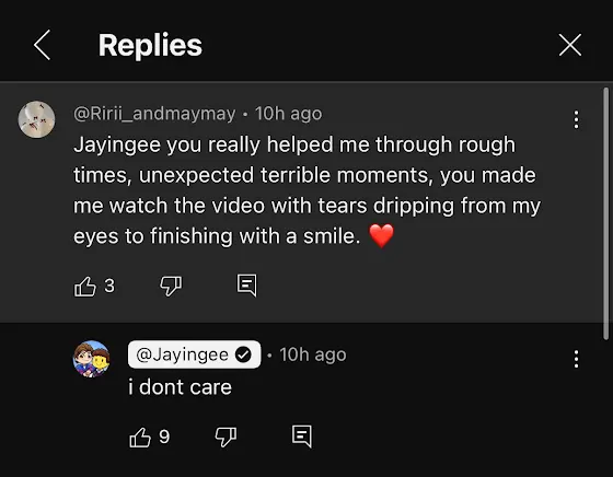 @Jayingee ❤️ Jayingee you have helped me through tremendously difficult times. When I was battling cancer in Guatemala I started watching flamingo and everytime you appeared on screen, the smile on my face would always double in size. After I beat the brain tumor cancer whatever I started to find you less and less funny but i appreciate everything that you've done for me ❤️❤️