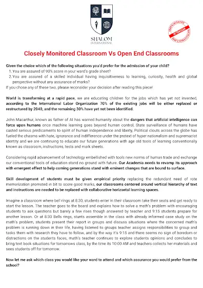 π At Shalom International, we prepare students for a rapidly changing world through skill-based learning and innovative classrooms that inspire curiosity, collaboration, and growth. Rajasthan's first skill-based school offers day-boarding with nutritious meals, a personalized curriculum, and AI-powered learning to build future-ready individuals. Letβs transform education together!
