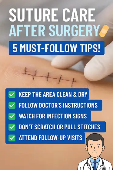 ๐ฉบ After surgery, your sutures (stitches) need proper care to prevent infection and ensure fast healing. Hereโs what you should do: