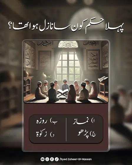 پہلا حکم کون سا نازل ہوا تھا؟ A) نماز B) روزہ C) پڑھو D) زکوٰۃ