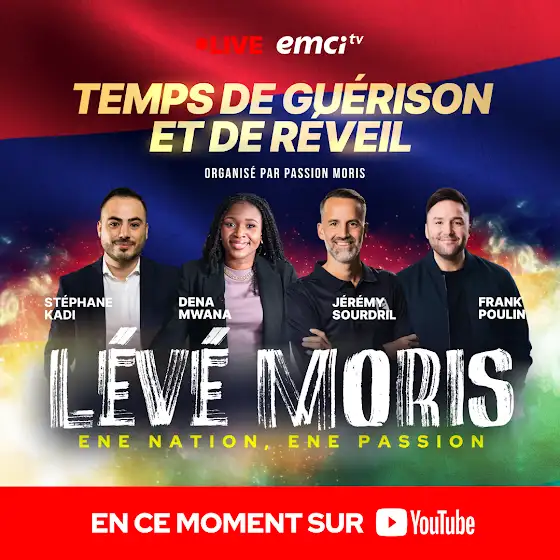 🙌 Nous arrivons les 19 et 20 décembre au Domaine Gros Cailloux à l’île Maurice pour ce grand événement organisé par Passion Moris et qui sera diffusé EN DIRECT sur les chaînes d’EMCI TV ! 🔥 Nous serons sur place en présentiel parmi vous avec Dena Mwana, Frank Poulin, Stéphane Kadi et Jérémy Sourdril 🙌 ✈️ Nous prenons l’avion cette semaine ! 🙏 Préparez-vous pour un temps fort de réveil spirituel et de guérison ! Amenez les malades, car nous allons prier ensemble et nous croyons que le Seigneur va faire de très grandes choses à l’île Maurice ! 🤗 Que vous habitiez à Maurice, aux alentours, à la Réunion, Rodrigues ou dans les îles environnantes, venez en très grand nombre ! Nous croyons que le Seigneur va se glorifier et manifester Sa gloire ! Nous vous donnons rendez-vous en présentiel : 📍au Domaine Gros Cailloux (derrière Espace Maison) 📆 Vendredi 19 décembre – 18h (heure mauricienne) 📆 Samedi 20 décembre – 16h (heure mauricienne) 🎟 Entrée libre et gratuite Pour toute information, contactez : www.passionmoris.com contact@passionmoris.com ☎️ +230 5539 1198 ☎️+230 5704 0539 ☎️+230 5905 7354 Événement retransmis EN DIRECT sur EMCI TV 👇 🔴 YouTube @EMCI TV 🔴 Nos chaînes TV sur Canal+ (canal 317), Startimes (canal 724), Eutelsat (16A), Free partout en France (chaîne 249) et l’application OQEE TV, la TNT publique du Congo et Canal+ Caraïbes (canal 76) 🔥 Ne manquez pas ce temps fort de guérison et de réveil !