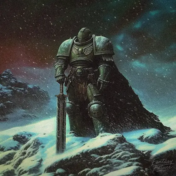 "There are worlds in the Imperium, frozen and still, where the snows fall like whispers upon ancient ruins. On these desolate plains, silence reigns, broken only by the howling winds and the distant echo of forgotten wars. Here, beneath the watchful gaze of ice-clad mountains, I walk in solitude, a servant of the Emperor, knowing peace only in these fleeting moments between battles. The cold is a reminder that we are but fleeting sparks in the darkness, our duty eternal, our solace found in the stillness of the snow."