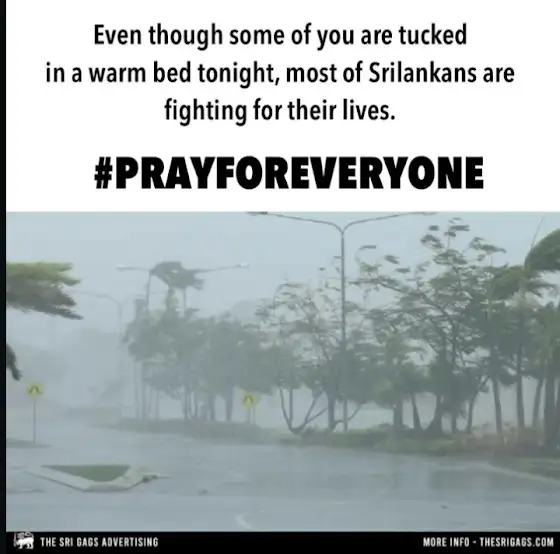 The entire population of my country Sri Lanka 🇱🇰 is undergoing adverse weather conditions, places are flooded, trees and buildings have been toppled over and in my area, persistent powercuts occur.