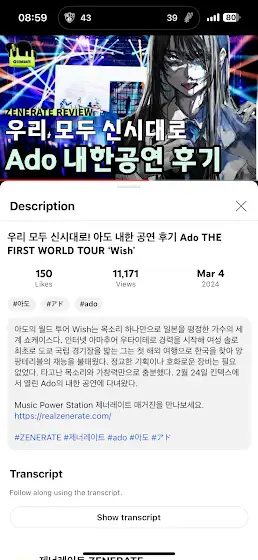 제너레이트의 아도 내한 공연 후기 “우리 모두 신시대로! 아도 내한 공연 후기 Ado THE FIRST WORLD TOUR ‘Wish’” 영상 조회수가 10,000회를 넘었습니다. 감사합니다 ☺️https://www.youtube.com/watch?v=r3ywS...제너레이트 채널 구독과 좋아요 알림설정 부탁드립니다!
