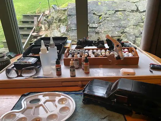 Rainy day activities. Adding some details to my FMS K5. Going to be raining all week. Hope I don’t run out of paints. @fmsmodelRC @fairrc