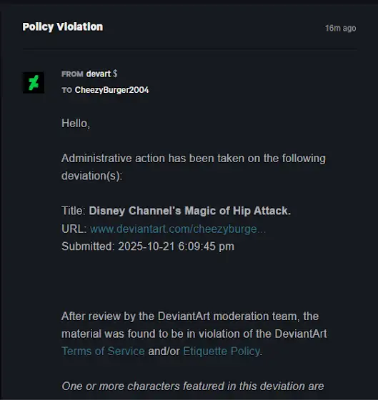 Oh my, My art is now takedown in DeviantArt...