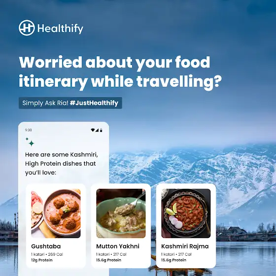 Let Ria handle your food planning while you focus on the journey ahead 🤝This 2024 we'll do the heavy lifting while you #JustHealthify 👉🏻 hlfy.me/JustHealthify7#Travel #Calories #AI #Ria
