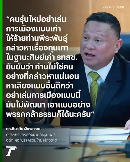 “เสธ.หิ” โดดป้องบ้านหลังเก่า #พรรครวมไทยสร้างชาติ ซัด นักการเมืองหนุ่มรุ่นใหม่ไม่พัฒนา ใช้การเมืองเก่า-วาทกรรมโจมตี “พีระพันธุ์“ กล่าวหามีเอี่ยวทุนเทา ยัน ท่านไม่ใช่คนแบบนั้นแน่นอน แนะ เอาแบบอย่าง #พรรคกล้าธรรม ที่ ร.อ.ธรรมนัส ให้แนวทางกับสมาชิกได้