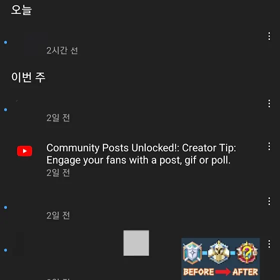 유튜브에서는 구독자 500명이 넘으면 커뮤니티 탭이 열린답니다.
