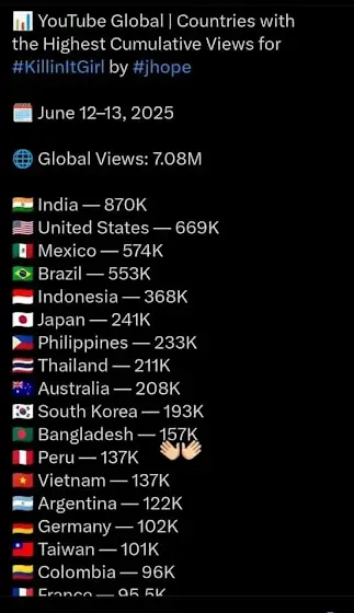 এবারও বাংলাদেশে নাম bts song ইসটিমে11নাম্বারে এসেছে 💝💝💝💝💝