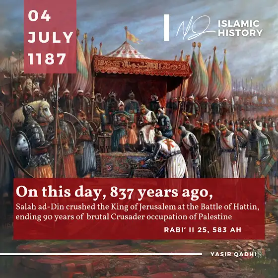 This July 4th, as people around the world celebrate the liberation of America, let us Muslims celebrate the liberation of Palestine. Today marks the 837th anniversary of the Battle of Hattin, a pivotal battle that changed the course of Islamic history. Salah ad-Din’s devotion to Allah and his deep attachment to the Quran set him apart, earning him the title of the Great Liberator of Jerusalem. May we be inspired by his legacy and may Allah grant our Ummah victory. #BattleOfHattin#SalahAdDin#Liberation#Freedom#July4th