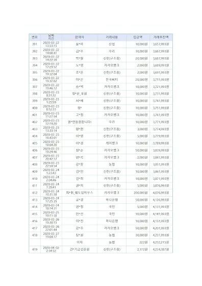 투명하게 운영하기 위하여 입금된 금액을 모두 밝히도록 하겠습니다.