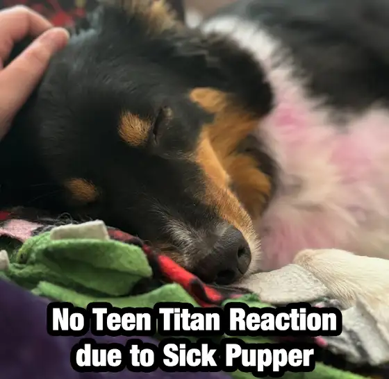 Every once in awhile, my dog, Suki, has a day where she gets very ill. All she wants to do is to have someone hold her and pet her stomach (mainly me). She has spent the majority of the day being nauseous and getting sick. She WILL be fine, but due to her wanting to be babied by me.... I will not have enough time to get the double episode reaction of Teen Titans S1 E11-12 edited for Youtube October 14th.