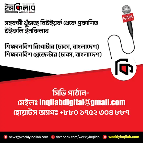 সহকর্মী খুঁজছে নিউইয়র্ক থেকে প্রকাশিত উইকলি ইনকিলাব