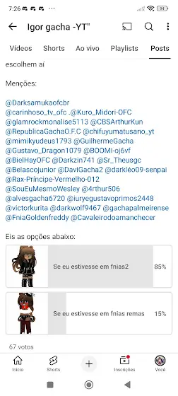 Menções:@Darksamukaofcbr @davi_blaze @Kuro_Midori-OFC @glamrockmonalise5113 @CBSArthurKun @chifuyumatusano_yt @GuilhermeGacha @mimikyudeus1793 @Izukychan590 @SOVIETUNION_URSS @BOOMI-oj6vf @Gustavo_Dragon1079 @BielHayOFC @Belascojunior @Davi Gacha @darkwolf9467 @Darkzin741 @TioMarcioGacha_2007 @iuryegustavoprimos2448 @alvesgacha6720 @Sr_Theusgc @SouEuMesmoWesley @brycedawsonGL @_ArthurLima_ @4rthur506 @FniaGoldenfreddy