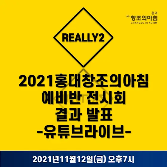 잠시 후~~저녁7시부터 2021 홍대창조의아침 예비반 전시회 (리얼리2) 결과 발표가 있습니다!