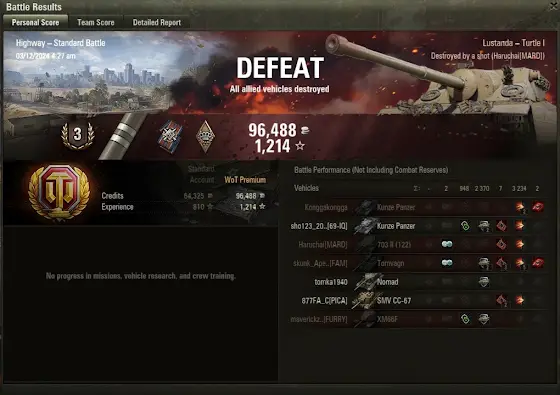 Finally 2 marked the Turtle. This thing is BUSTED. Getting the 2 marks requires me to kinda nurse it at 80% for the whole week and then get 3 Ace tanker games in a day to finally get close enough that a 3.2k damage game even at a loss is enough to push me over. 4th tanks I've ever 2 marked, second one I got for the year.