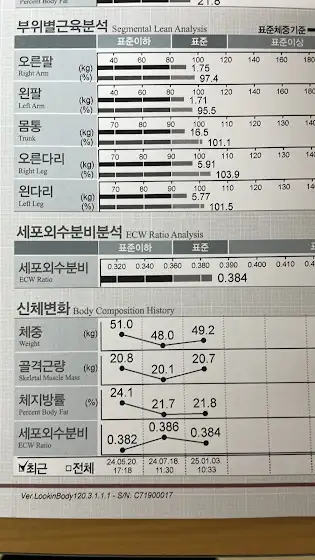 현재 몸무게는 48~49kg 유지중.
