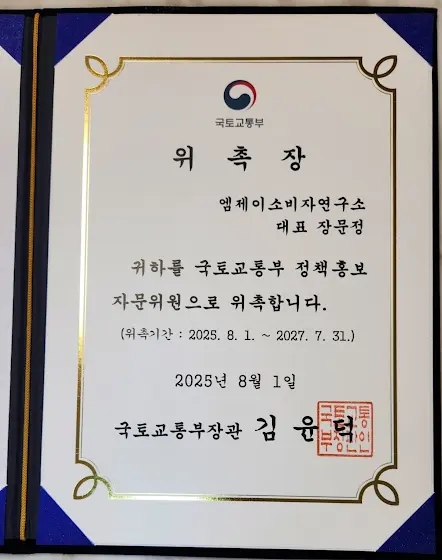 현 정부에서 "국토교통부 정책홍보 자문위원"으로 일하게 되었습니다.