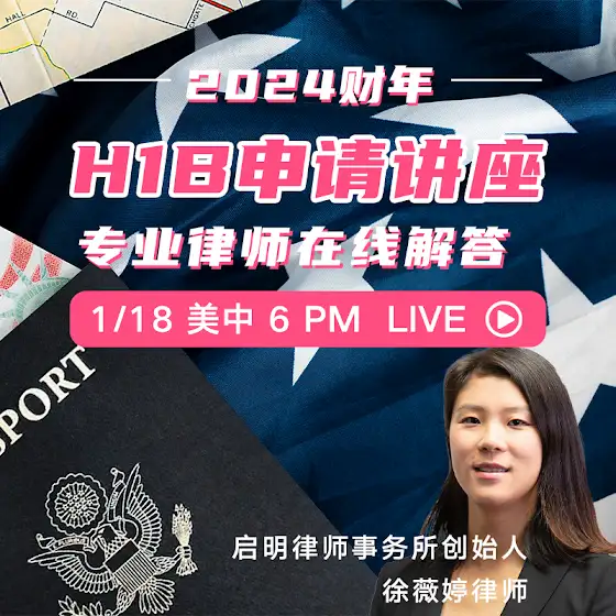 1月18日,Dealmoon TV 直播间邀请到启明律师事务所的创始人徐薇婷律师给大家讲解2024财年H1B申请概况。