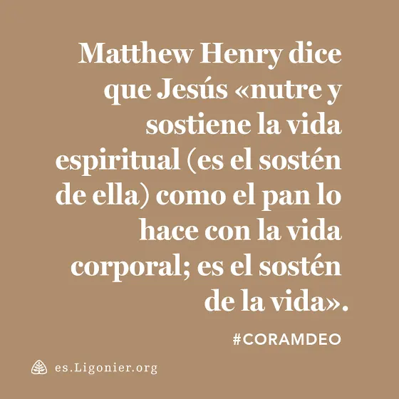 #CoramDeo: Matthew Henry dice que Jesús «nutre y sostiene la vida espiritual (es el sostén de ella) como el pan lo hace con la vida corporal; es el sostén de la vida». Las doctrinas del evangelio concernientes a Cristo—que él es el mediador entre Dios y los hombres, que él es nuestra paz, nuestra justicia, nuestro Redentor; por estas cosas viven los hombres. Si queremos tener vida eterna, debemos conocer a Cristo personalmente, creyendo en Él y sabiendo quién es y lo que ha hecho.