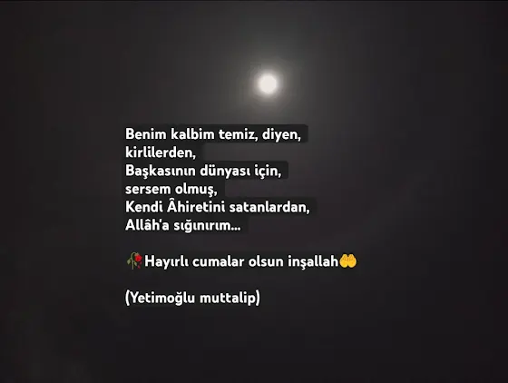 #Benim kalbim temiz, diyen, kirlilerden, Başkasının dünyası için, sersem olmuş, Kendi Âhiretini satanlardan, Allâh'a sığınırım... 🤲