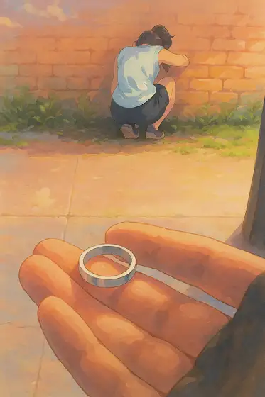 Agad akong lumabas para hanapin ang singsing. Nahanap ko ito, at habang bitbit iyon, bumili ako ng pagkain para sa kanya. Pagbalik ko, tinungo ko ang kanyang kwarto, nagpakumbaba, at humingi ng tawad.