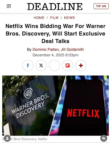 Netflix could soon own Warner Bros. What do you think of this?