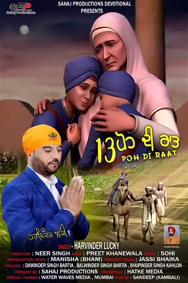 ਪ੍ਰੋਡਿਊਸਰ ਦਵਿੰਦਰ ਸਿੰਘ, ਬਲਵਿੰਦਰ ਸਿੰਘ ਅਤੇ ਭੁਪਿੰਦਰ ਸਿੰਘ ਕਾਹਲੋਂ ਵੱਲੋਂ ਸ੍ਰੀ ਗੁਰੂ ਗੋਬਿੰਦ ਸਿੰਘ ਜੀ ਦੇ ਪਰਿਵਾਰ ਦੀ ਲਾਸਾਨੀ ਸ਼ਹਾਦਤ ਨੂੰ ਸਮਰਪਿਤ ਧਾਰਮਿਕ ਗੀਤ 13 ਪੋਹ ਦੀ ਰਾਤ ਸਹਿਜ ਪ੍ਰੋਡਕਸ਼ਨ ਵੱਲੋਂ ਰਿਲੀਜ਼ ਕੀਤਾ ਗਿਆ ਹੈ। ਪ੍ਰੋਡਕਸ਼ਨ ਮਨੀਸ਼ਾ ਦੀ ਅਗਵਾਈ ਵਿੱਚ ਟੀਮ ਵੱਲੋਂ ਇਸ ਗੀਤ ਰਾਹੀਂ 13 ਪੋਹ ਸਰਹਿੰਦ ਦੀ ਯਾਦ ਸਾਂਝੀ ਕੀਤੀ ਗਈ ਹੈ। ਇਸ ਗੀਤ ਵਿਚ ਹਰਵਿੰਦਰ ਲੱਕੀ ਨੇ ਆਪਣੀ ਦਰਦ ਭਰੀ ਆਵਾਜ਼ ਵਿੱਚ ਗਾਇਆ ਹੈ। ਇਸ ਗੀਤ ਨੂੰ ਗੀਤਕਾਰ ਸੁਰਿੰਦਰ ਤੀੜਾ (ਡੇਰਾ) ਵੱਲੋਂ ਸਾਕਾ ਸਰਹਿੰਦ ਦੀ 13 ਪੋਹ ਦੀ ਰਾਤ ਨੂੰ ਧਿਆਨ ਵਿੱਚ ਰੱਖਦੇ ਹੋਏ ਇਤਿਹਾਸਕ ਗਾਥਾ ਨੂੰ ਸ਼ਬਦਾਂ ਵਿੱਚ ਪਰੋਇਆ ਗਿਆ ਹੈ। ਸੰਗੀਤ ਮਿਊਜ਼ਿਕ ਡਾਇਰੈਕਟਰ ਸੋਹੀ ਵੱਲੋਂ ਤਿਆਰ ਕੀਤਾ ਗਿਆ ਹੈ। ਟੀਮ ਵਿੱਚ ਪ੍ਰੀਤ ਖੰਨੇ ਵਾਲਾ, ਜੱਸੀ, ਸੰਦੀਪ ਕੰਬਾਲੀ ਸੈੱਕੀ ਸ਼ਾਮਲ ਹਨ।