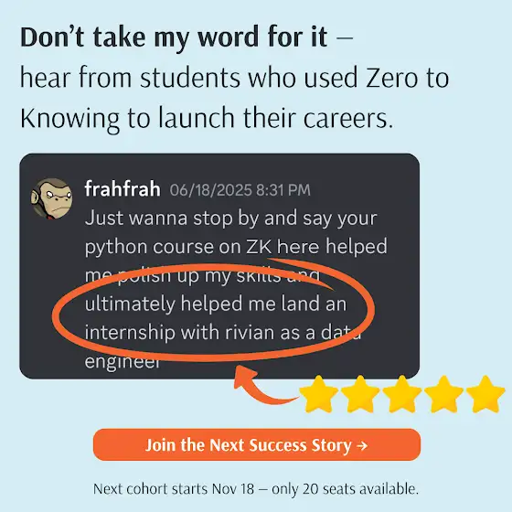 This is a 12-week live Python cohort where you’ll: 👉 Learn by building 👉 Get feedback directly from me 👉 Graduate with a portfolio that proves your skills