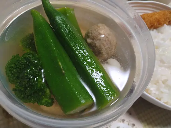 オクラ、ブロッコリー、カリフラワー、肉だんご
