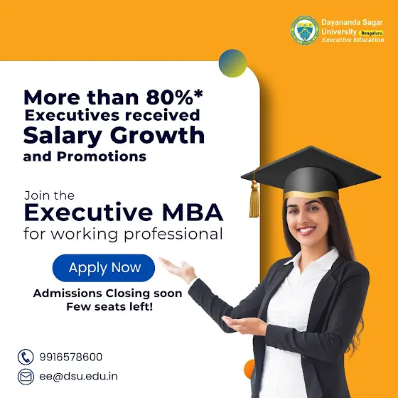 More than 80% Executives received Salary Growth & Promotions Admissions Closing 🔜 Apply Now! The orientation of 18th Batch is on 29th June 2024. ✓ UGC Approved Master’s Degree Program ✓ Affordable fees with 5 installment benefit ✓ Weekend Classes ✓ 11 Super Specializations ✓ Top Faculties from IIT’s/IIM’s and Ph.D. Scholars with Industry Experience ✓ Capstone Project & Case Study Assignments. To Know more, call us today at +919916578600 or Email us at ee@dsu.edu.in