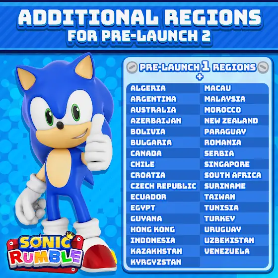 ¡El prelanzamiento 2 de Sonic Rumble comienza el 11 de octubre de 2024 en las siguientes regiones!.