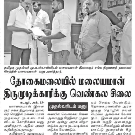 சங்ககால அரசர் #சேதுராயர் வழிவந்த வெட்சி போர் கள்ளன் #மலையமான்_திருமுடிக்காரிக்கு தோகைமலையில் வெண்கல சிலை அமைக்க தமிழக #முதல்வரிடம் ஒட்டுமொத்த #கள்ளர் இனம் சார்பாக கோரிக்கை வைத்தார் சகோதரர் செந்தில் மலையமான் 😍#Kallar | #Malaiyaman | #malayamanthirumudikari | #mukkulathor | #mukkulam | #Thevar | #sedhuraiyar | #sethuraiyar | #malaiyaman_sethuraiyar |தேவர் | சேதுராயர் | மலையமான் | சேதிராயர் | கள்ளர் | மலையமான் | முக்குலம் | முக்குலத்தோர் | அகமுடையார் | போர்க்குடி |