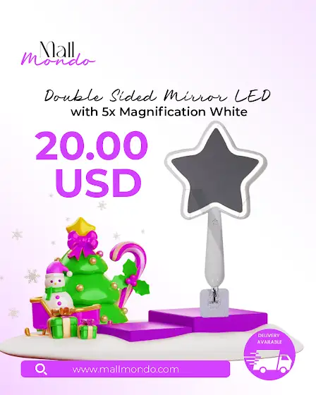 Light up your beauty routine with our double-sided star-shaped led mirror. Double Sided Mirror Led - 20$ Grab yours today and glow every day! 📦 Delivery Available 🛒 Order via WhatsApp: 81 29 84 85 🌐 Shop now: www.mallmondo.com #ledmirror #beautyaccessory #giftidea #5xmagnification #starmirror #deliveryavailable #mallmondo #holidayglow #onlineshopping #festivebeauty