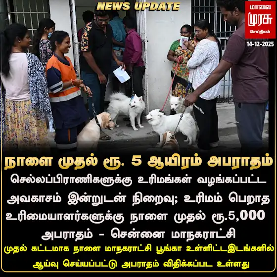 உரிமம் பெறாத உரிமையாளர்களுக்கு நாளை முதல் ரூ. 5 ஆயிரம் அபராதம் - சென்னை மாநகராட்சி #Malaimurasu #Newsupdate #Dog #Chennai