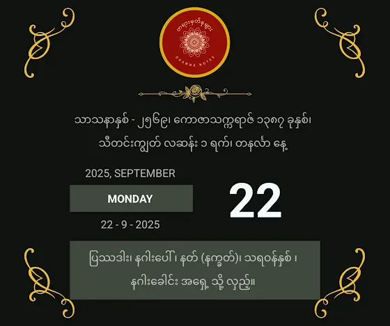 ဓမ္မမိတ်ဆွေများအားလုံး 🌼 မင်္ဂလာရှိသော နေ့သစ် ဖြစ်ပါစေ 🌼❇️ မင်္ဂလာ နေ့သစ် အချိန်အခါမှာ အားလုံးပဲ စိတ်၏ ချမ်းသာခြင်း၊ ကိုယ်၏ ကျန်းမာခြင်းများ ပြည့်စုံပြီး၊ အဓိပ္ပါယ်ရှိသော ဘဝ နေ့ရက်များ ပိုင်ဆိုင်နိုင်သော မင်္ဂလာ နေ့သစ် ဖြစ်ပါစေ။❇️ သဘာဝ ဘေးရန်အပေါင်းမှ ကင်းဝေးပြီးမြန်မာပြည်ကြီး ငြိမ်းချမ်းသာယာပါစေကြောင်းဆုတောင်းမေတ္တာပို့သအပ်ပါတယ်။❇️ နေ့စဉ်တရားတော်များ ဖြန်ဝေခြင်းမှ ရရှိလာသော ကုသိုလ်တရားများကိုလည်း နာယူပူဇော်သူအားလုံးကို သေသေချာချာမေတ္တာပို့ အမျှပေးဝေပါတယ်။❇️ နှလုံးသား၌တရား ကိန်းဝပ်နိုင်ကြပါစေ။#တရားမှတ်စုများ#တရားတော်များ#နေ့စဉ်ဆုတောင်း#မေတ္တာပို့@DhammaNotes-Official
