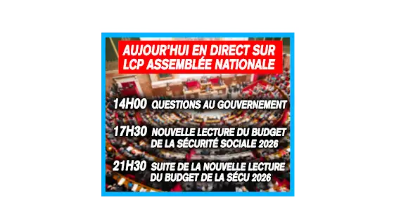 🕑 14h00 – Questions au Gouvernement avec Elsa Mondin-Gava 🕟 17h30– Nouvelle lecture du budget de la Sécurité sociale 2026 🕤 21h30 – Suite de la nouvelle lecture du budget de la Sécurité sociale 2026