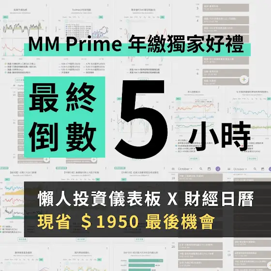【買年送月】最終倒數 5 小時!三大優惠 + 投資最強五大工具,錯過不再!一直以來,M平方希望將以往專業機構才有的:數據、工具、分析觀點,交給一般投資人,讓所有人都能用數據,找回自己的投資主導權。今年,我們為了歡慶海外、限定的「買年送月」活動,已進入最終倒數 5 小時,三大優惠及工具,將錯過不再:📍 懶人投資儀表板📍 全球財經日曆📍 加入現省 1950 元起更重要是,加入買年送月,還保證獲得五大超強投資工具,幫助你的投資,更投資自己!加入 MM Prime 買年送月方案,享五大權益:💡 未來 13 個月的投資月報💡 保證獲得超過 100 份獨家報告💡 無限制圖表瀏覽及圖檔下載💡 工具箱、ETF 專區等量化工具💡 MacroMicroGPT、產業專區全新體驗把握最後機會:pse.is/58gxb6