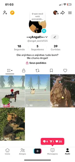 Oie anjinhos e anjinhas tudo bom? Irei fazer mudanças no canal como exemplo irei mudar o nick,tbm estou agr no tik tok! Vc devem ter visto q mudei o “estilo” dos meus vídeos né? Agr eles estão com qualidade boa,n a qualidade do whi,é q estou usando um app para dar essa qualidade,o nome dele está embaixo dos meus 2 shorts q fiz hoje,se quiserem tutorial para ter essa qualidade,procure no tik tok pq n consegui fazer tutorial,bom irei mudar a foto de perfil,o banner,menos a descrição,atualizações feitas no meu haras e novos cavalos para treinar,eu confesso q a comunidade whi no tik tok é melhor q a do YouTube mas deixo passar,aq está uma foto da minha conta no tik tok! E sim gente,a Vênus n é mais a principal 🥹mas amarei ela do msm jeito!