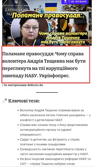 \#НАБУ #корупція #суд #волонтер #АндрійТищенко #Укрінфопрес