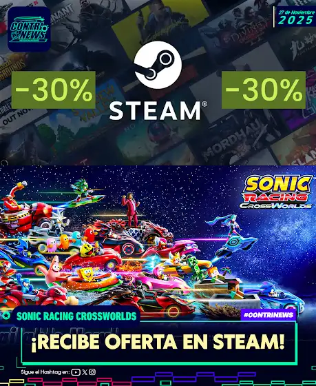 #CONTRINEWS ¡ES SONIC RAACIIIING!! Finalmente #SonicRacingCrossworlds recibe un descuento de 30% tanto para la versión Estandar como Deluxe en #Steam 🚨Valido hasta el 11 de Diciembre🚨